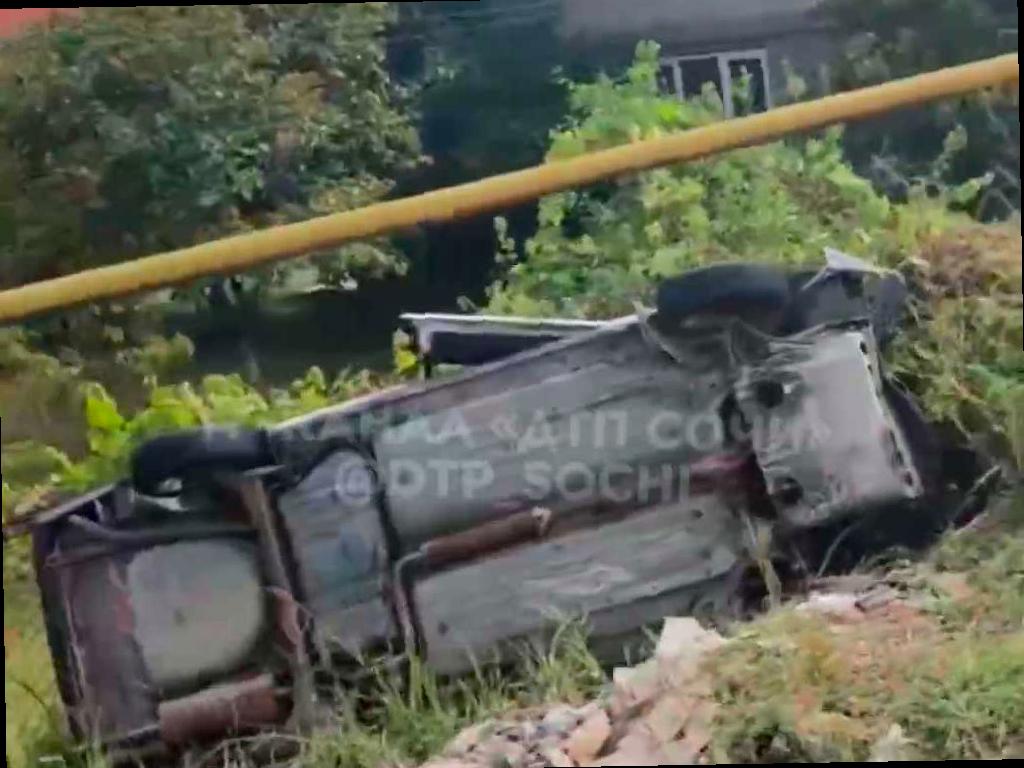 Автомобиль слетел с дороги и перевернулся в селе Барановка в Хостинском районе Сочи