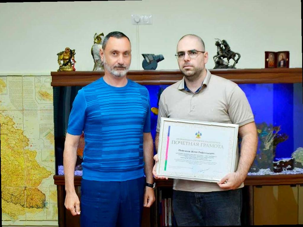 В рамках Дня медицинского работника медработников Сочи наградили Почетными грамотами. Депутат Законодательного Собрания Краснодарского края Виктор Тепляков вручил награды заместителю главного врача инфекционной больницы №2 Александру Меняйло и заведующему эндокринологическим отделением городской больницы №4 Илье Пейсахову.