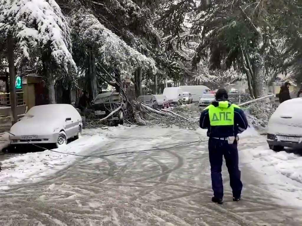 В Лазаревском районе Сочи упало дерево из-за снегопада