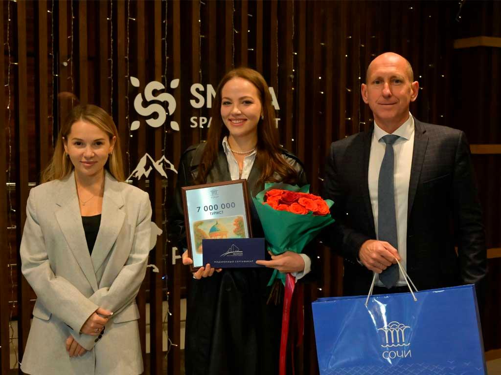 Как приятный сюрприз, Ирине вручили сертификат семимиллионного туриста и подарки от курорта.
